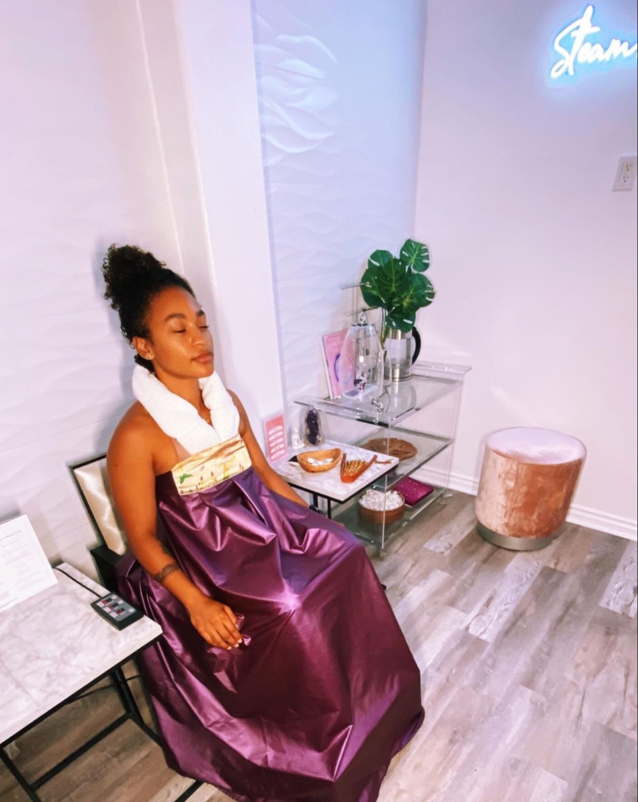 Our vaginal steaming involves squatting or sitting over our steaming queen chair with hot water that is infused with our healing herbs.